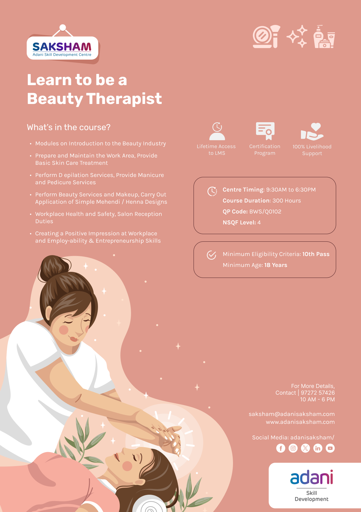 The Beauty Technician program equips learners with essential skills required to deliver core beauty and personal care services. The course is designed to meet salon and wellness industry requirements, with a strong focus on hygiene, service quality, and client care.