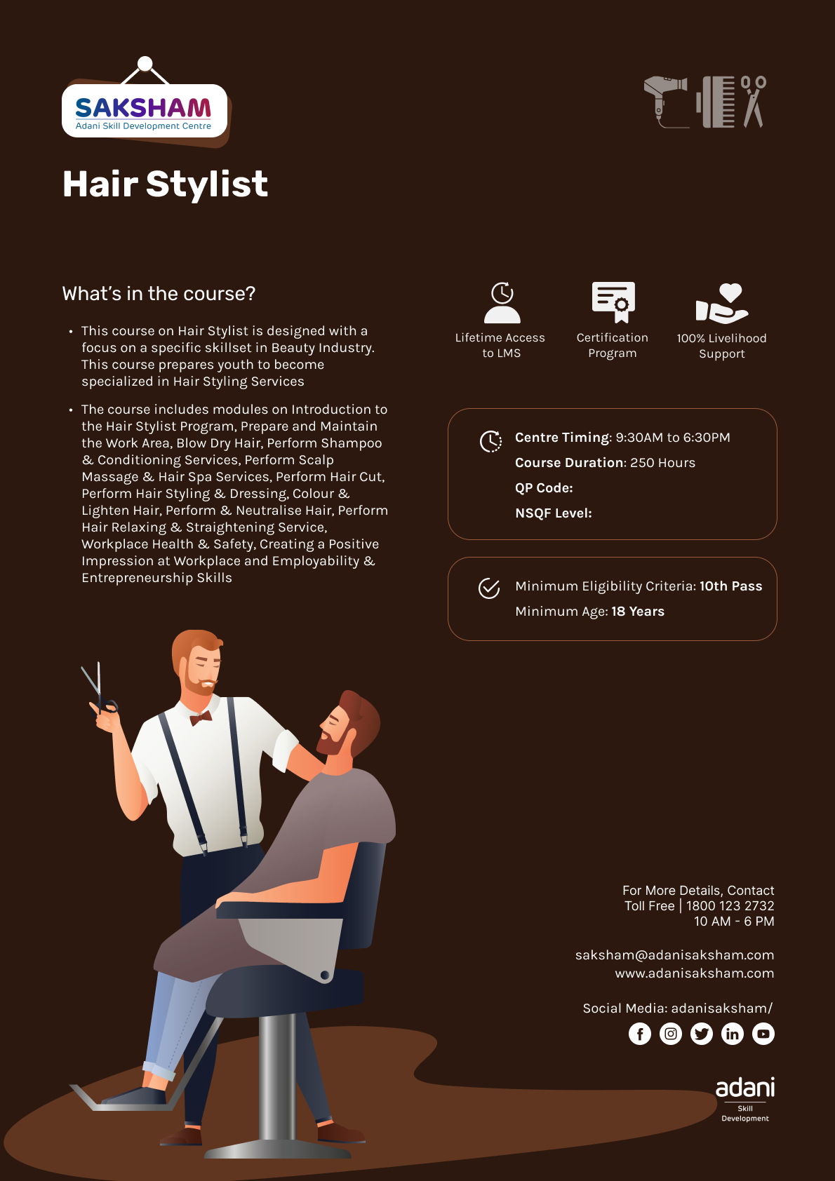 The Hair Stylist program prepares learners for professional roles in salons and grooming services. The course focuses on developing practical hairstyling skills aligned with industry standards, client expectations, and workplace hygiene practices. Training is structured to support both employment and self-employment pathways.