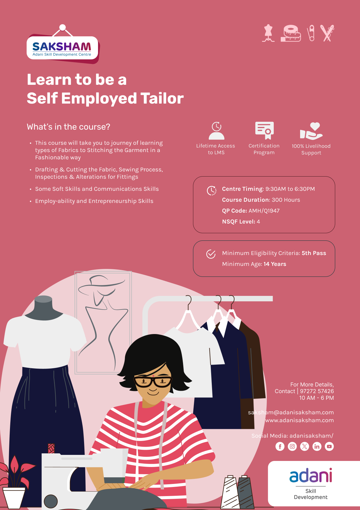 The SET program develops proficiency in garment construction, stitching techniques, and client management, combining classroom learning with extensive practical workshops. Learners gain the confidence and skills to operate independently or contribute effectively to professional tailoring units.